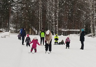 Uimaharjun Taimen ja Aapo's Skin 22.2.2019 yhteistyössä järjestämässä suksien testausillassa saatiin asiantuntevat vinkit suksien voiteluun ja valintaan. Paikalle kokoontui parikymmmentä testaajaa. 5 - 7 vuotiaiden hiihtokoulussa harjoiteltiin hiihdon perustaitoja yhdessä pelaten ja leikkien. Reippaita koululaisia oli mukana kahdeksan. Lisäksi illan aikana rakennettiin lumiukkoja osana Suomen Ladun "Ulkona kuin lumiukko " -kampanjaa.